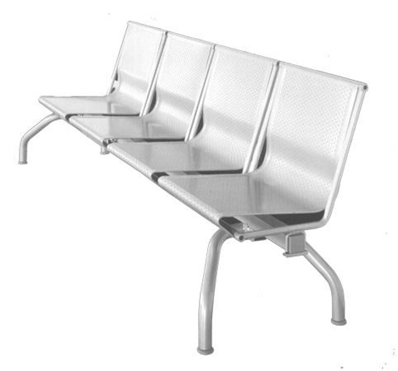 Versione a 4 posti. La seduta monoscocca realizzata con un unico foglio d'acciaio verniciato con polveri epossidiche, ha una forma leggera ed estremamente robusta al tempo stesso.