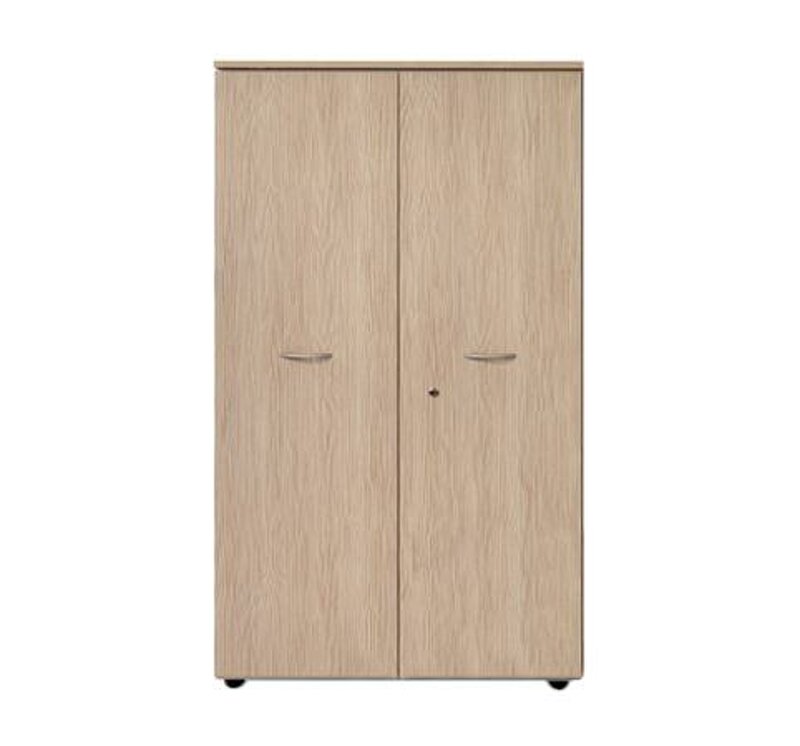 Armadio a due ante con serratura e 3/4 ripiani interni, disponibile in due diverse altezze.