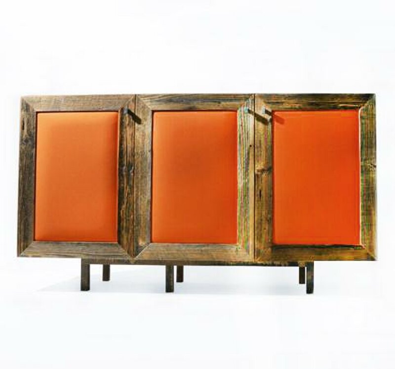 Armadio insonorizzante "Silenzio". Dal design unico e moderno, la madia Silenzio è realizzata in abete multistrato invecchiato e trattato, e deve la sua particolarità ai pannelli insonorizzanti disposti su 3 lati, i quali riducono il riverbero nella stanza.