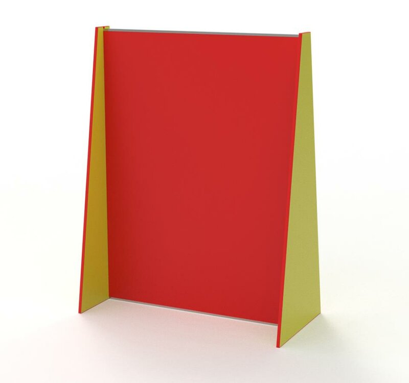 Separè composto da struttura in legno Hemlock verniciato trasparente sezione 4x4 cm, con pannello in polietilene colorato, intero, o abbinabile a pannello in policarbonato trasparente sp. 4 mm. La struttura poggia su fianchi in polietilene.